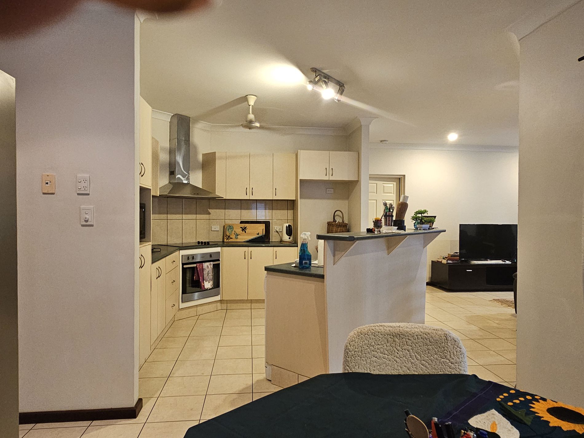 The home boasts an inviting living room with elegant flooring and tasteful decor, creating a warm atmosphere for family gatherings. The open-plan kitchen is equipped with modern appliances, ample counter space, and a cozy dining area, making it the heart of the home.
